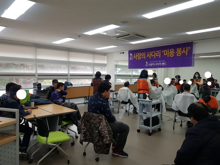 [세계타임즈 이장성 기자] 다양한 봉사를 꾸준히 하고 있는 대전시 SNS 봉사단체 사다리 밴드(리더 이정제)는 25일 오전10시,대덕구 동구 구도동에 위치한 아름다운복지관(관장 최재천)에서 30명의 장애인들에게 미용봉사로 우리 사회의 따뜻한 사랑을 실천하였다.