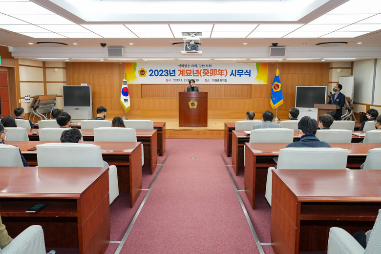 국주영은 의장은 이날 시무식에서“작년 7월 제12대 도의회 출범 이후 다양한 의정활동으로 도민의 신뢰를 회복하고 강한 의회의 모습을 보여줬다”며 “이는 직원 한 분 한 분이 각자 주어진 일에 충실하면서 묵묵히 의원들의 의정활동을 지원하고 의회 위상을 높일 수 있도록 함께 해줬기 때문”이라고 격려했다.