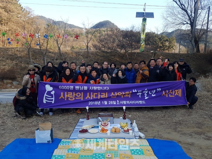 [대전=세계타임즈 이장성 기자] 6천명 봉사단체인 SNS 밴드모임 사랑의 사다리 밴드(리더 이정제)의 산악회(회장 김호현)는 28일 오전 9시 계족산입구에서 시산제와 제2회 척사대회로 봉사 회원들 간의 화합을 다졌다.