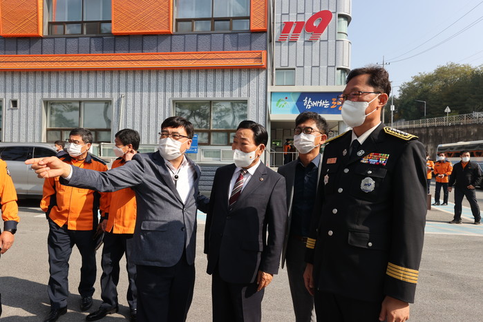 이날 의원들은 현안업무 등을 보고 받고 소방공무원과 의용소방대원들의 헌신과 노고를 위로하며 대원들과 소통하는 시간을 가졌다.