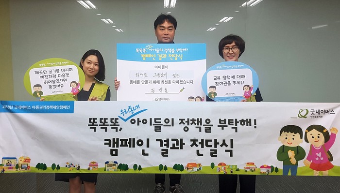 정근진 굿네이버스 인천북부지부장은 “캠페인에 직접 참여한 아이들의 의견을 아동복지관을 통해 전달하게 되어 매우 의미 있게 생각한다”며 “이번 정책 전달을 통해 아이들이 행복하고 건강하게 성장할 수 있는 인천광역시가 되길 희망한다”라고 밝혔다.