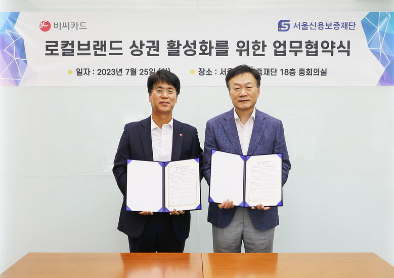 지난 25일 오후 서울시 마포구 소재 서울신용보증재단 본사에서 진행된 협약식에는 서거정 BC카드 전무, 김승영 서울신용보증재단 상임이사 등이 참석했다.