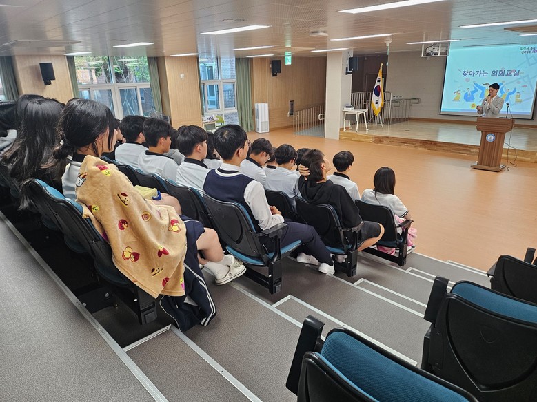 학생들은 질의응답 시간을 통해 ‘정치와 법’ 교과에서 배운 지방의회에 대해 궁금했던 것들을 질의했으며, 조 의원은 이에 대한 답변과 함께 학생들의 진로와 미래에 대한 조언도 들려줬다.