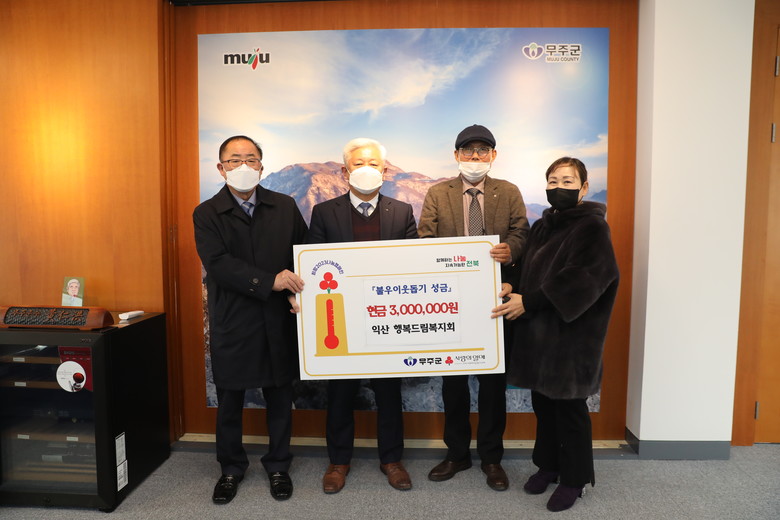 사단법인 행복드림복지회 조연용 대표는 “무주지역 주민들이 추운겨울을 맞아 건강하게 잘 보내시라는 마음에서 작으나마 정성을 보내게 됐다”라며 “건강하고 행복하게 지내셨으면 좋겠다”라고 말했다.