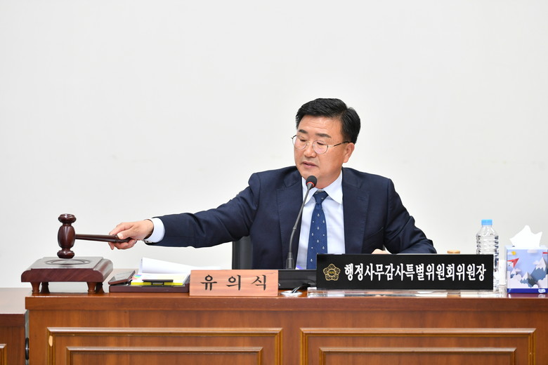 유의식 위원장은 “행정사무감사의 목적은 행정사무 전반에 관한 사항을 정확히 파악하고, 분석해 의정활동과 예산심사에 필요한 자료와 정보를 획득하는 것”이라며, “행정의 미흡한 부분에 대해 시정을 요구하고 정책적 대안을 제시해 집행기관에 대한 견제와 감시기관으로 역할을 충분히 수행해 군정발전을 도모해야 한다”고 밝혔다.