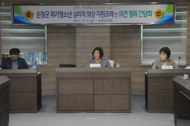 이번 간담회를 주관한 김정숙 의원은“이번 조례 제정을 통해 순창군 관내 아동·청소년이 고통없는 건강한 성장을 통해 행복한 삶을 누릴 수 있기를 바란다”고 밝혔다.