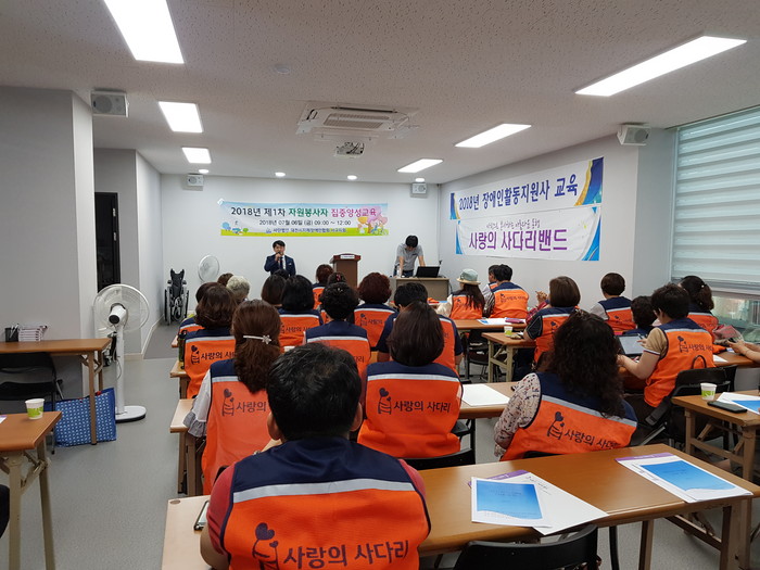 이날 자원봉사자 집중양성교육을 주관한 대전시지체장애인협회 서구지회 권준석 지회장은 “오늘 교육을 통해서 사랑의 사다리 밴드 봉사가 더 체계적으로 발전하는 봉사단체가 되기를 바란다.“고 말했다.