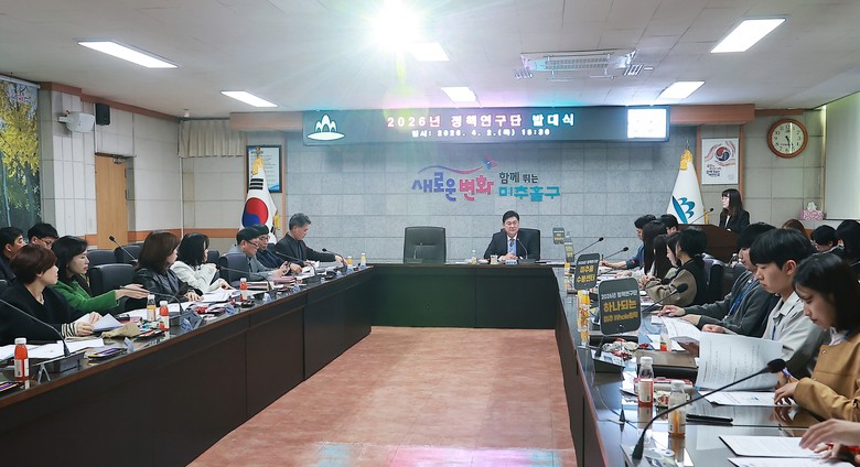 [미추홀구 세계타임즈=심하린 기자] 인천 미추홀구(구청장 이영훈)는 지난 2일 구청 중회의실에서 ‘2026년 정책연구단 발대식’을 개최하고 구정 전반의 정책 방향과 연계한 정책 발굴에 본격적으로 착수했다.