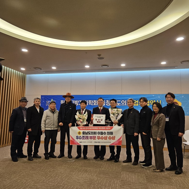 [충남 세계타임즈=이현진 기자] 충남도의회 이철수 의원(당진1·국민의힘)이 21일 2025년 한국지방자치학회 동계학술대회에서 우수조례 부문 ‘우수상’을 수상했다.