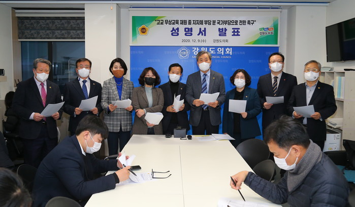 12월 9일(수), 고교 무상교육 재원 중 지자체 부담분에 대해 국가부담으로 전환을 촉구하는 성명을 발표하였다.