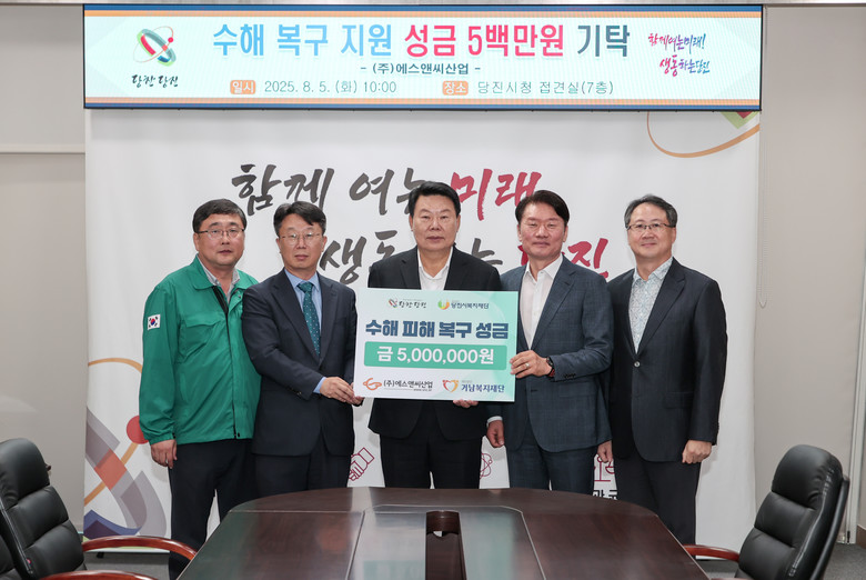 오성환 당진시장은 “어려운 시기에 지역을 먼저 생각해 주신 따뜻한 손길에 깊이 감사드린다”며 “기탁해 주신 성금은 침수 피해를 겪은 시민들의 실질적인 복구와 지원에 소중히 쓰겠다”고 전했다.