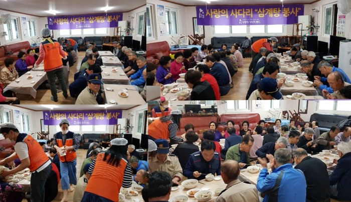 삼계탕 봉사를 총괄한 유희자 단장은 “가시오가피, 엄나무, 인삼, 황기, 밤, 대추 등 보양식인 삼계탕을 드시고 어르신들께서 더 건강하고 행복하게 사시길 바란다.“고 말했다.