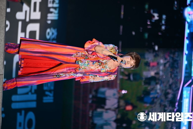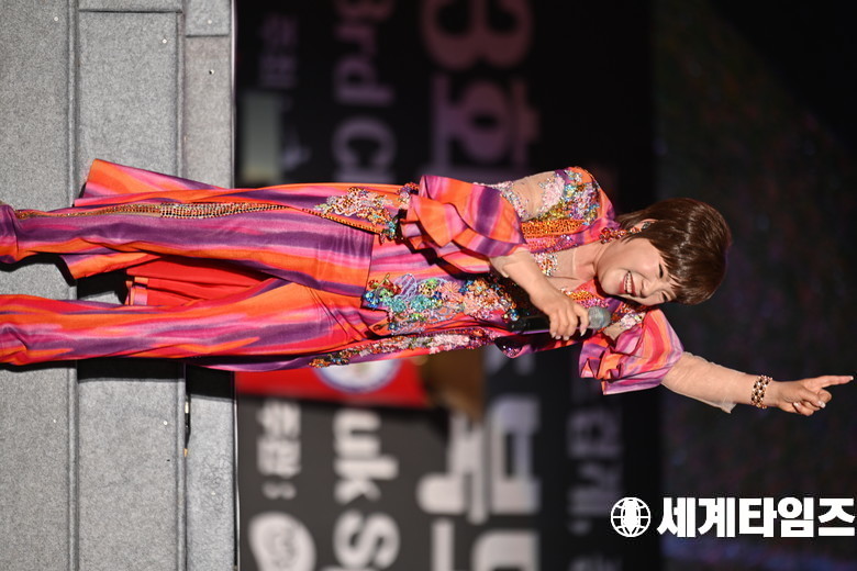 가수 '김연자'가 9일 충북도민체육대회 개막식에 참석해 공연을 하고있다.