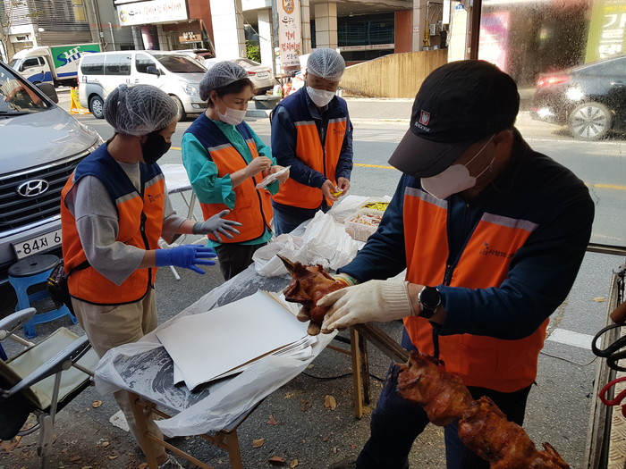 바비큐 통닭 봉사단 신상일 단장은 “코로나 19로 힘든 시기에 바비큐 통닭을 맛있게 드시고 힘을 내시길 바란다.”고 말했다.