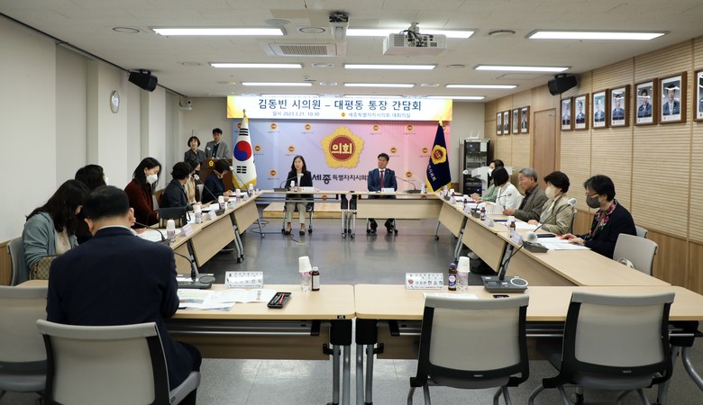 [세종 세계타임즈=이채봉 기자] 세종특별자치시의회 미래전략수도 완성 특별위원장 김동빈 의원은 21일 대평동 통장들과의 간담회를 개최했다.