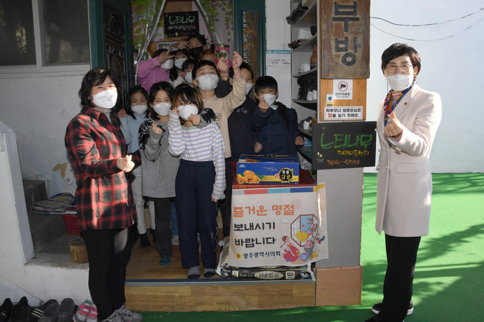[광주=세계타임즈 손권일 기자] 광주광역시의회 정순애 부의장은 20일 오후 설 명절을 맞이하여 서구 광천동에 위치한 비전스쿨 지역아동센터 등을 방문해 위문품을 전달하고 시설종사자들의 노고를 격려했다.