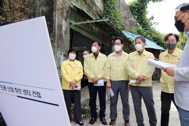 ▲ DaaS(Drone as a Service)기반 글로벌 오션시티 실증 사업을 바탕으로 해외 시장 개척과 민간시장 창출 지원 허브 센터 구축을 위해 추진되는 드론산업 허브센터 건립현장(사하구 하단동), ▲新연료 선박 기술 개발 사업 연구를 위한 친환경 수소연료선박 R&D플랫폼 구축 현장(남구 우암동), ▲부산추모공원 봉안시설 만장 대비를 위한 부산추모공원 봉안당 증축 현장(기장군 정관읍), ▲북부소방서 청사 노후화 심각에 따른 북부소방서 재건축 현장(사상구 삼락동)을 둘러보고 현장 진행 상황을 점검했다.