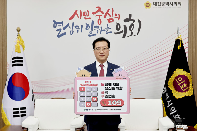 지난달 30일 이장우 시장으로부터 지목받아 캠페인에 참여한 조원휘 의장은 “힘들고 우울할 때 마음을 달래주는 따뜻한 말 한마디가 생명을 살릴 수 있다”며, “긴급 상황 시 119를 바로 떠올리듯 자살 위기 상황 시 109를 바로 떠올릴 수 있도록 적극적인 캠페인 참여를 부탁드린다”고 전했다.
