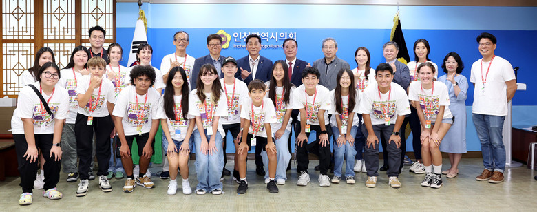 [인천 세계타임즈=심하린 기자] 인천광역시의회(의장:이봉락)는 한국에 방문중인 Korea & Hawaii History Club (KHHC) 학생 등 25명을 6월11일 의회에 초청하여 상호간 교류의 시간을 가졌다.