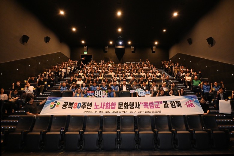 이날 행사는 김제선 중구청장과 이정만 대전 중구 공무원 노조위원장 등 직원 150여 명이 참여했다. 광복 80주년을 맞아 대한민국 독립전쟁사를 다루는 다큐멘터리 영화를 함께 관람하면서 대한민국이 어떤 희생과 헌신 위에 세워졌는지를 되새기고, 공직자로서 함께 나아갈 방향에 대해 논의하고 소통하는 시간을 가졌다.