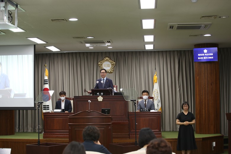 최종오 의장은 “이번 임시회 기간 중 실시된 상반기 결산 및 하반기 계획보고를 청취하며 시정 전반을 다각적으로 검토했다”면서 “업무보고를 통해 제시된 부진한 사업들에 대한 개선점과 향후 발전방안을 바탕으로 시정발전과 시민 복리증진을 위한 사업들이 차질 없이 추진되어 익산시가 한 단계 도약할 수 있는 계기가 되길 기대한다”고 전했다.