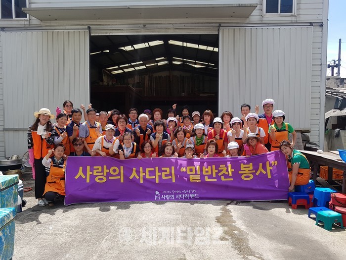 [대전=세계타임즈 이장성 기자] 5천명의 회원들이 활동하는 자발적인 SNS봉사 밴드인 사랑의 사다리 밴드(리더 이정제)는 12일 오전 9시부터 대덕구 석봉동 마림목재(대표 유희성)에서 밑반찬을 만들어 대전시에 거주하는 206명의 저소득층, 독거노인, 장애인가정에 전달을 하면서 이웃사랑을 전했다.