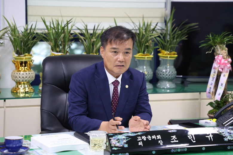 한편 “양심에 어긋난 행동을 하지 말고, 작은 힘이나마 투명한 세상을 만드드는 데 일조하자.”를 정치철학으로 삼고 있는 조민규 의장은 고창‧고수‧신림(가 선거구)지역을 선거구로 두고 있으며, 제5대 고창군의회에 입성한 4선 의원으로서 지난 제7대 전반기 부의장, 후반기 산업건설위원장, 제9대 전반기 산업건설위원장 등을 역임하며 활발한 활동을 펼쳤다.