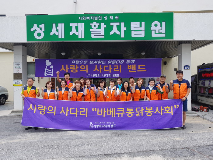 [대전=세계타임즈 이장성 기자] 7천명 SNS 대전시 봉사단체 사랑의 사다리 밴드(리더 이정제)는 3일 오후3시 유성구 용계동에 위치한 성세재활자립원과 성세시온의집의 중증장애인들에게 통닭봉사로 우리 사회의 따뜻한 사랑을 전달하였다