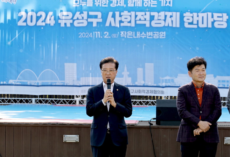 [대전 세계타임즈=송민수 기자] 대전시의회 조원휘 의장은 2일 봉명동 작은내수변공원에서 펼쳐진 ‘2024 유성구 사회적경제 한마당’에 참석해 “오늘 행사를 계기로 사회적 경제가 널리 알려지고 활성화 되기를 바란다”고 말하고, 사회적 약자의 경제활동 촉진 등 사회적 가치 창출과 공익성 확보를 위한 사회적기업과 관계자들의 노고에 감사의 마음을 전했다.