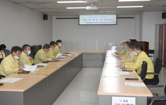 김용집 의장의 주재 하에 조석호‧정순애 부의장과 5개 상임위원장 등이 참석하여 진행된 이번 대책회의에서는 정민곤 광주시 시민안전실장의 수해 응급복구 상황 보고와 시의원들이 파악한 지역구 피해현황 및 주민여론 공유, 더욱 신속하고 효과적인 피해복구 방안 등을 논의했다.