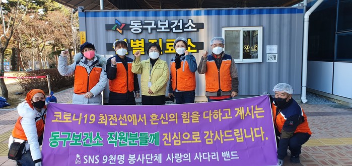 장선애 동구보건소장은 “오늘 사랑의 사다리 밴드 봉사단체에서 맛있는 통닭을 지원해 주어서 큰 힘과 위안이 된다.”면서 “동구보건소는 코로나19 종식을 위해서 최선을 다하겠다.”고 말했다.
