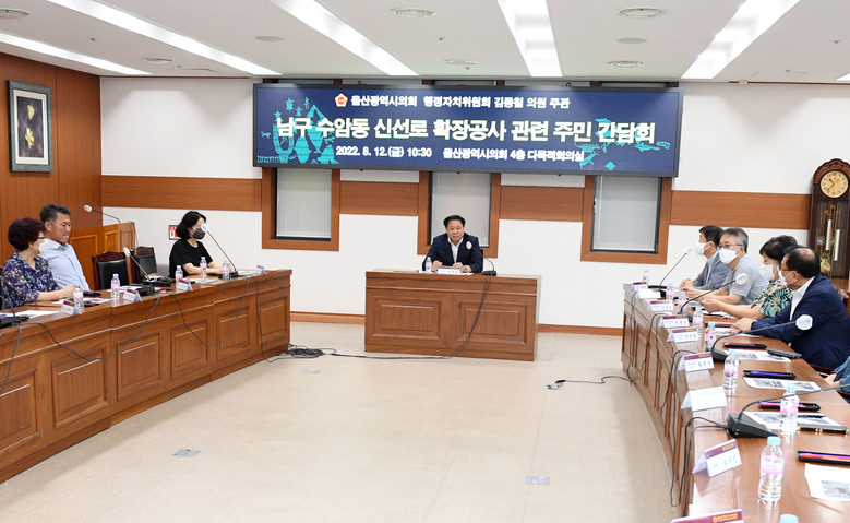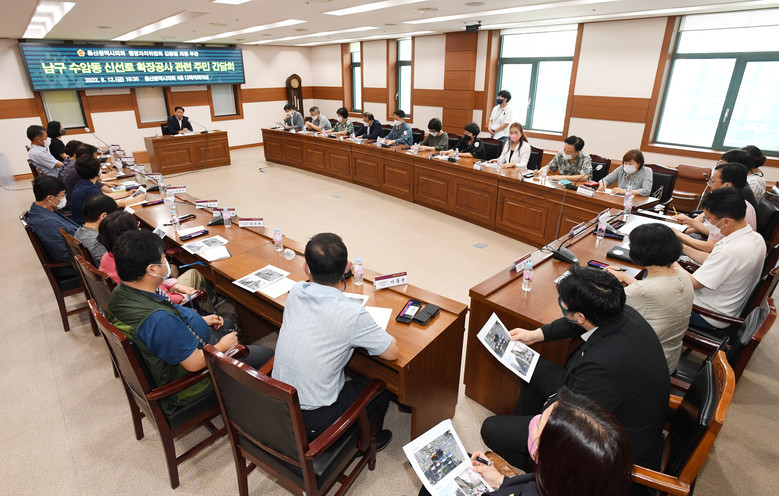 [울산 세계타임즈=이호근 기자] 울산광역시의회 김동칠 의원(행정자치위원회)은 12일 오전 10시 30분, 시의회 4층 다목적회의실에서 ‘남구 수암동 신선로 확장공사’에 관한 주민 의견 청취를 위한 간담회를 개최했다.