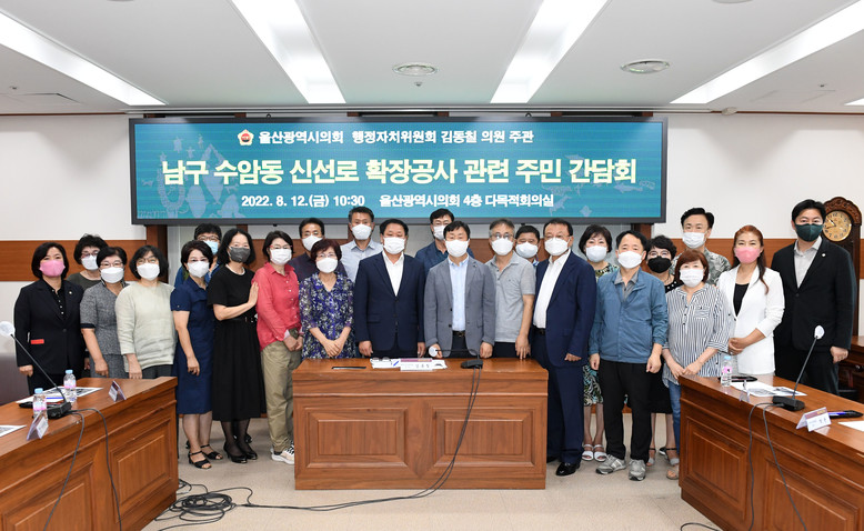 이날 간담회는 시 관계자, 남구의원, 주민 등 30명이 참석하였으며, 남구 선암동(두왕로)과 야음동(수암로) 일대의 도로망 정비와 관련, 미완료 구간 520m에 대한 도로개설 및 확장 계획, 주민 민원 청취, 주민들 간 소통을 위해 마련됐다.