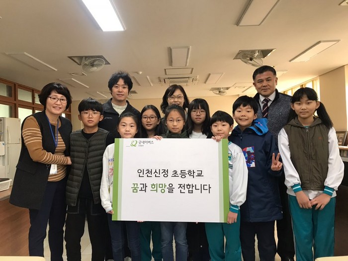 이번 후원금은 인천신정초등학교 학생들이 자체적으로 진행한 알뜰 시장 바자회를 통해 마련되었으며, 모아진 수익금을 굿네이버스 인천본부에 기부하였다.