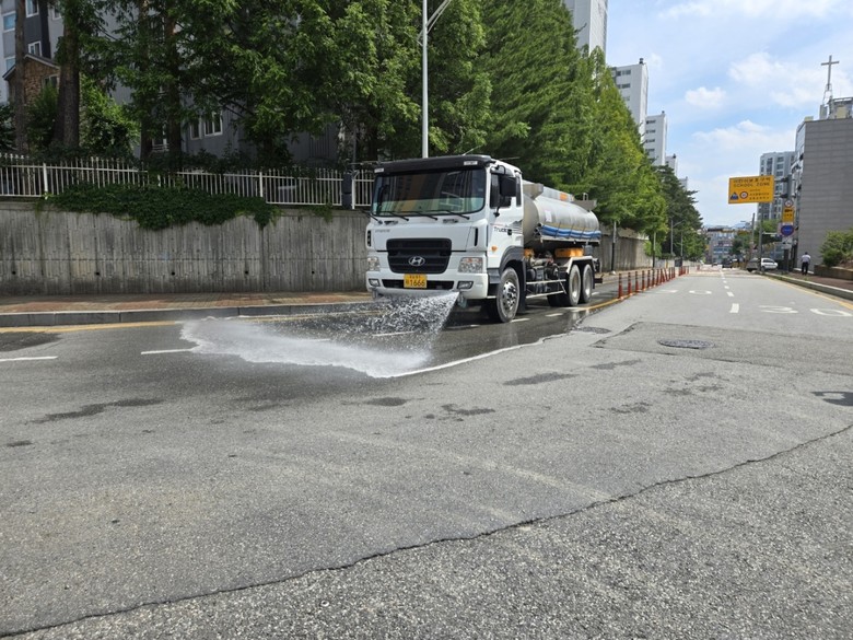시는 최근 폭염이 수일째 이어지고 공사현장 주변에서 발생하는 비산먼지 민원도 지속적으로 제기됨에 따라 여름철 폭염 및 비산먼지 피해 최소화를 위해 살수작업을 추진한다.