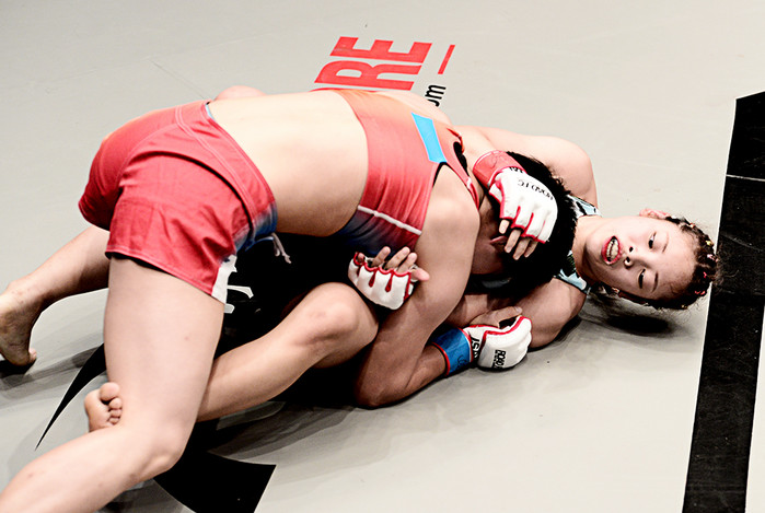 2라운드에도 그라운드 싸움이 이어졌다. 하지만 막상막하였던 1라운드와 달리 이예지는 밑에 깔려 아무 것도 해보지 못했다.