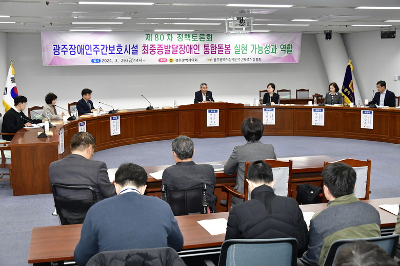 29일, 광주시의회 환경복지위원회 소속 서용규 의원(더불어민주당, 비례)은 광주광역시청 5층 예결특위회의실에서 광주광역시장애인주간보호시설협회(회장 정현화)와 공동으로 “광주지역주간보호시설에서의 최중증발달장애인 통합돌봄 실현 가능성과 역할을 위한 토론회”를 개최했다.