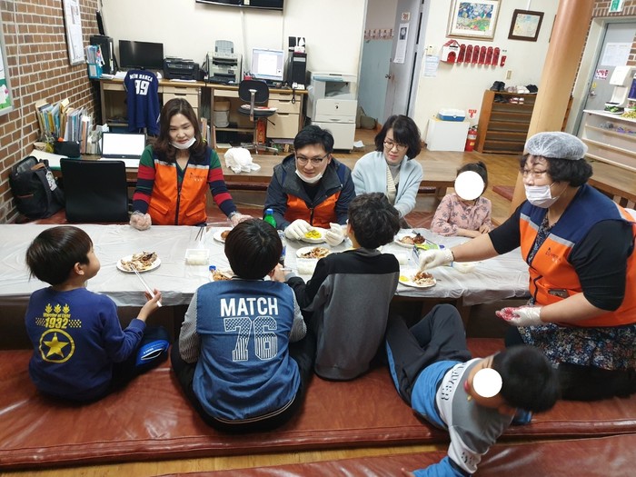 이날 봉사에는 신상일 단장, 유희자 단장을 비롯해서 회원 20명이 신탄진동 2곳, 덕암동 3곳 등 5곳의 지역아동샌터 160명의 아이들 간식시간에 통닭을 전달하였다.