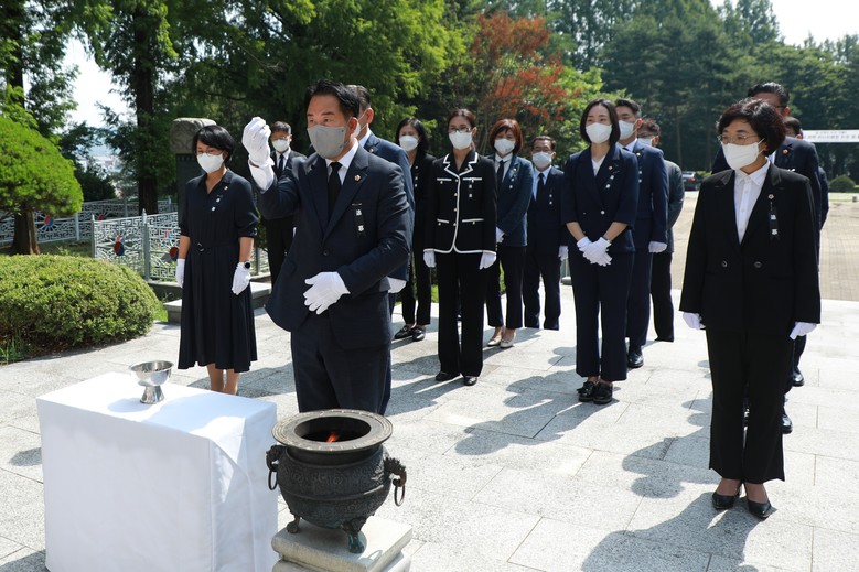 제4대 세종시의회 의원들은 이날 오전 10시 충령탑을 참배한 뒤 개원식장으로 향했다.