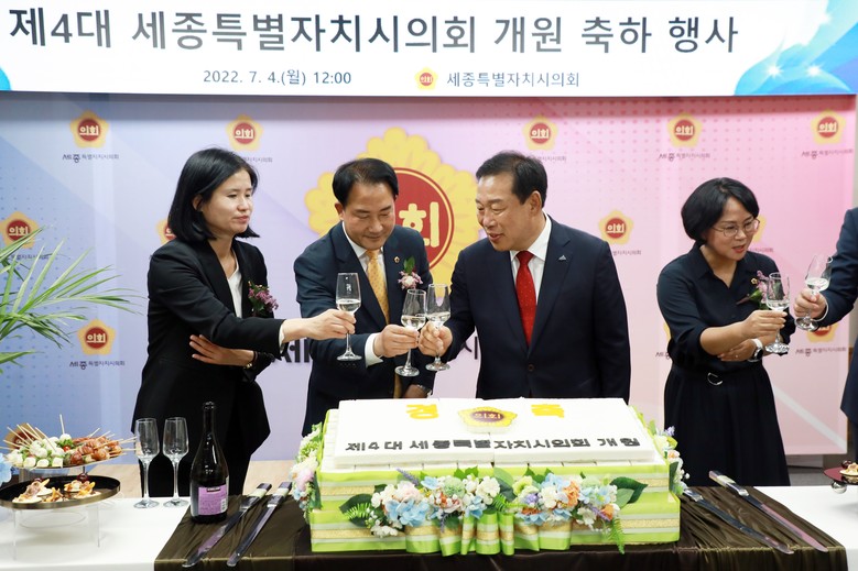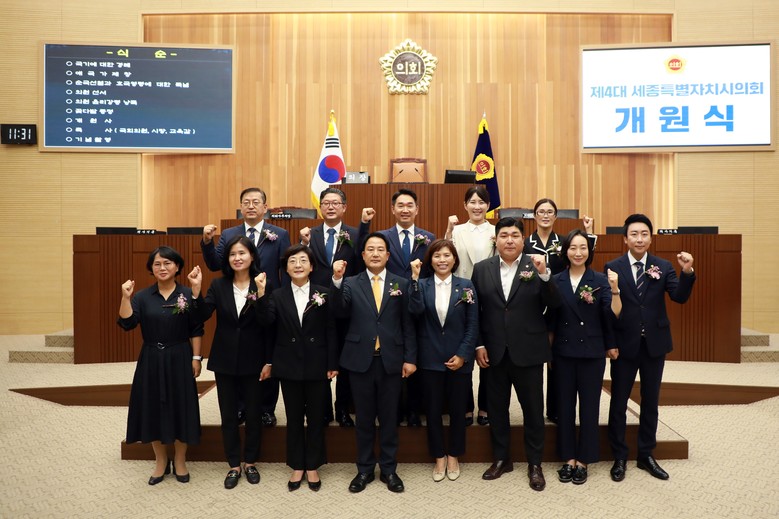 제4대 세종시의회 상병헌 신임 의장의 주재로 열린 개원식은 의원 선서와 의원 윤리강령 낭독, 개원사, 주요 내외빈의 축사 순으로 진행됐다.
