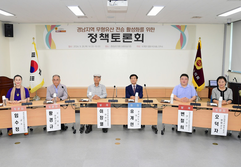 [경남 세계타임즈=최성룡 기자] 경상남도의회 문화복지위원회 유계현(국민의힘, 진주4) 의원이 주최한 ‘경남지역 무형유산 전승 활성화 정책토론회’가 26일 경남도의회 대회의실에서 개최됐다.