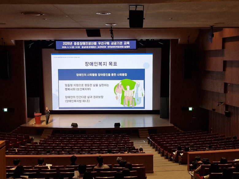 교육은 도 및 시군, 교육청 등 도내 공공기관 구매·계약 업무 담당자 300여 명이 참석한 가운데, 제도 설명, 생산·판매시설 소개, 홍보 부스 관람 등 순으로 진행됐다.
