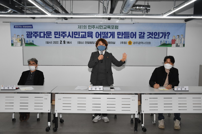 김광란 시의원은 “‘민주시민교육’에 대한 이해와 상이 각각 다르다”면서 “민주시민교육 유관기관과 행정, 시민사회가 2022년을 ‘민주시민교육’ 상에 대한 이해와 합의과정을 만들어가는 해로 설정하고 ‘민주시민교육포럼’을 지속적으로 만들어 갈 필요가 있다”고 말했다.