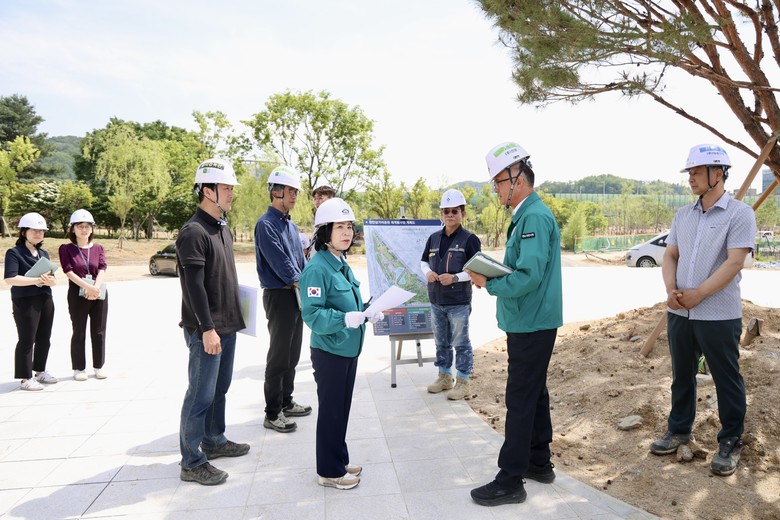 의장은 첫 일정으로 천안삼거리공원 재조성 현장을 찾아 공사 진행 상황을 점검하고, 계획보다 크게 늦어지고 있는 사업 속도에 대해 강하게 질타했다.