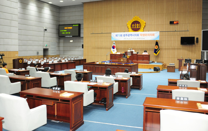 광주광역시의회는 학생 모의의회를 2005년부터 광주광역시교육청에서 학교를 추천받아 진행 중으로 지금까지 총 75회 8,100여명이 체험했고 11월 중에는 체험 우수 수기에 대해 시상할 예정이다.