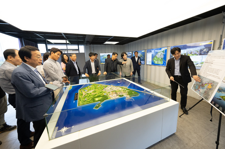 이날 건설교통위원회 위원들은 현장 관계자와 함께 개발이 진행되고 있는 한상드림 아일랜드 조성사업, 교육연구부지 등을 둘러보았다.