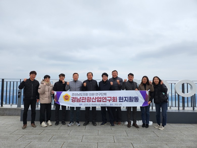 [경남 세계타임즈=최성룡 기자] 경상남도의회 의원연구단체인 경남관광산업연구회(회장 조영명)은 하동·남해군 일원을 찾아 2월 15일부터 1박2일 일정으로 관광활성화 방안모색을 위한 현지활동을 추진한다.