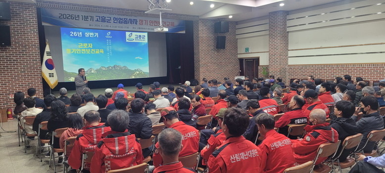 [고흥군 세계타임즈=우덕현 기자] 고흥군(군수 공영민)은 지난 2일부터 3일까지 2일간 고흥문화회관 송순섭실에서 군 소속 현업종사자 266명을 대상으로 ‘2026년 1분기 현업종사자 정기 안전보건교육’을 실시했다고 밝혔다.