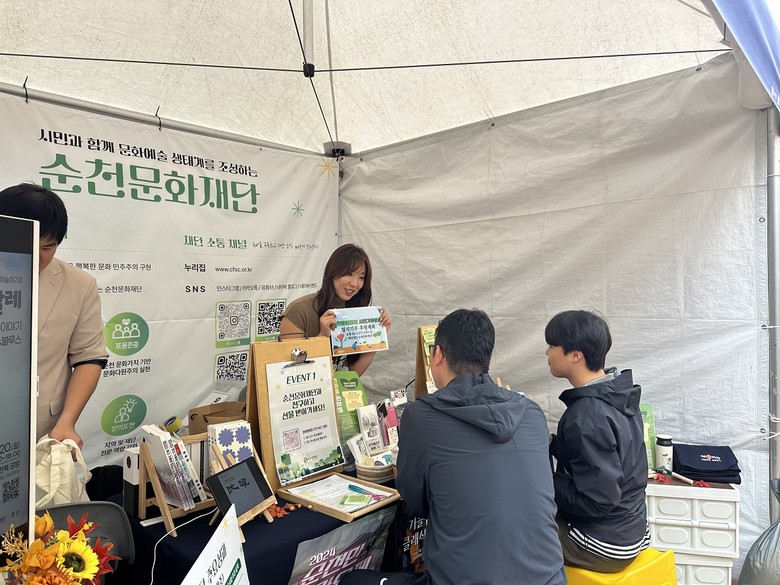 ▲ 지난해 10월 전남아트박람회 중 순천문화재단 _문화기부사업_ 홍보부스를 운영했다(문화틔움) |