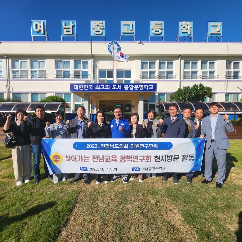 한편, 12명의 전남도의원으로 구성된 ‘찾아가는 전남교육 정책연구회’는 교육현장을 중심으로 전남교육 발전방안을 모색하기 위해 구성된 의원연구단체로 인구감소, 학생 유출, 도농간 교육격차 심화로 소멸 위기에 놓인 작은학교를 살리기 위해 토론회 개최, 연구용역 추진 등 활발한 의정활동을 이어오고 있다.